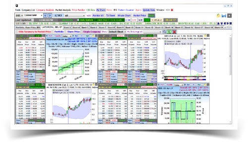 Smarter Stock dashboard is a powerful and unique feature. You can monitor Minute Price, Market Price, Buy/Sell order book, Technical Graph, Your portfolio all at a time for multiple companies in a single multi-tabbed dashboard. You can arrange individual boxes as you want, and save it for viewing later.